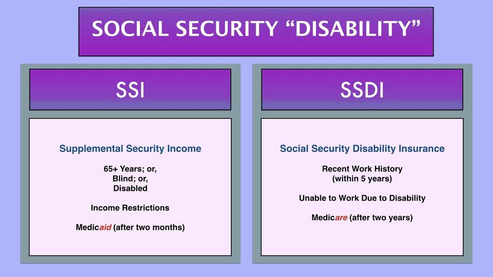 Social Security Disability Insurance, or SSDI, and Supplemental Security Income, or SSI, are both programs funded federally and managed through the Social Security Administration. They are both designed to support people who have disabilities which prevent them from working one is an insurance program while the latter is an entitlement program.